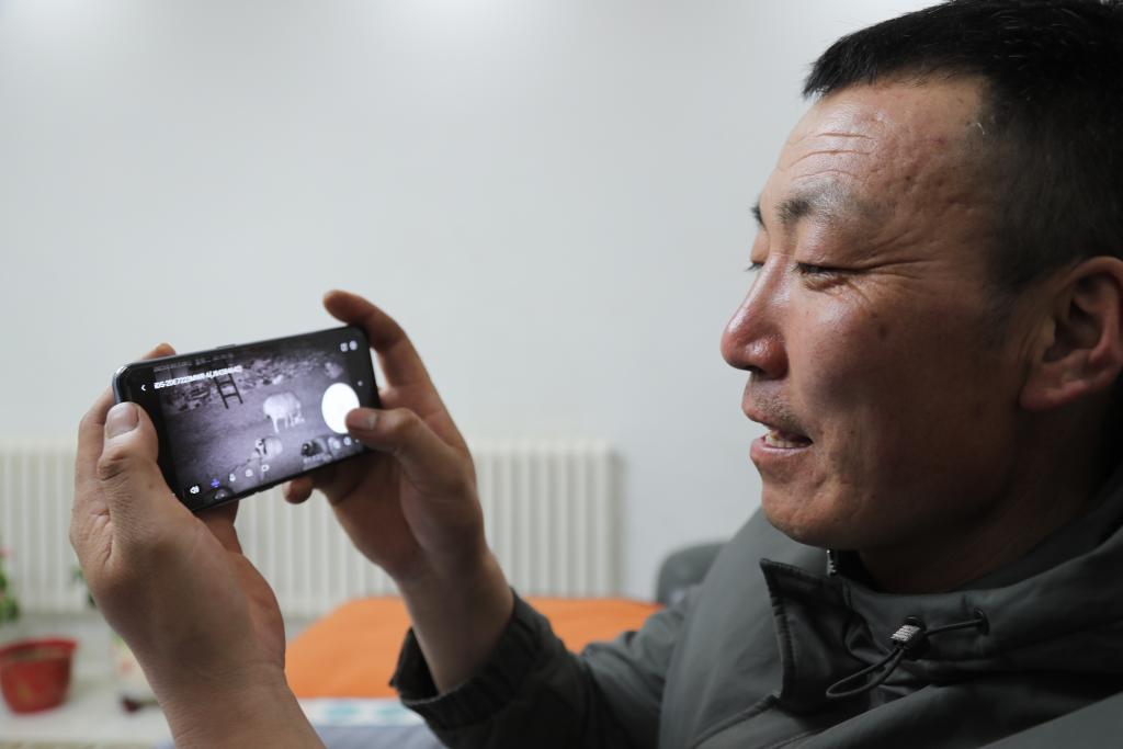 在傍晚羊群回到“家”后,我望着成群结队的羊羔,羊羔也望着我,此起彼伏地发出“咩咩”声,它们的叫声有高有低,声音有粗有细,像是要争先恐后地跟我聊天。就这样,从夕阳西下到了满眼星空。热情的朝克大哥为我们铺好了被褥,然后便坐在床头和我们讲起了他的牧民生活,原来他通过手机就可以清楚地看到羊圈内的情况,里面的监控通过网络联通手机,让朝克不会错过这个繁殖季节任何一次“下羊羔”。不知不觉,我们与朝克大哥已经不仅仅是采访与被采访的关系,更成为了朋友。“看,这只羊,明天就要下羊羔了,”朝克举着手电筒说到。