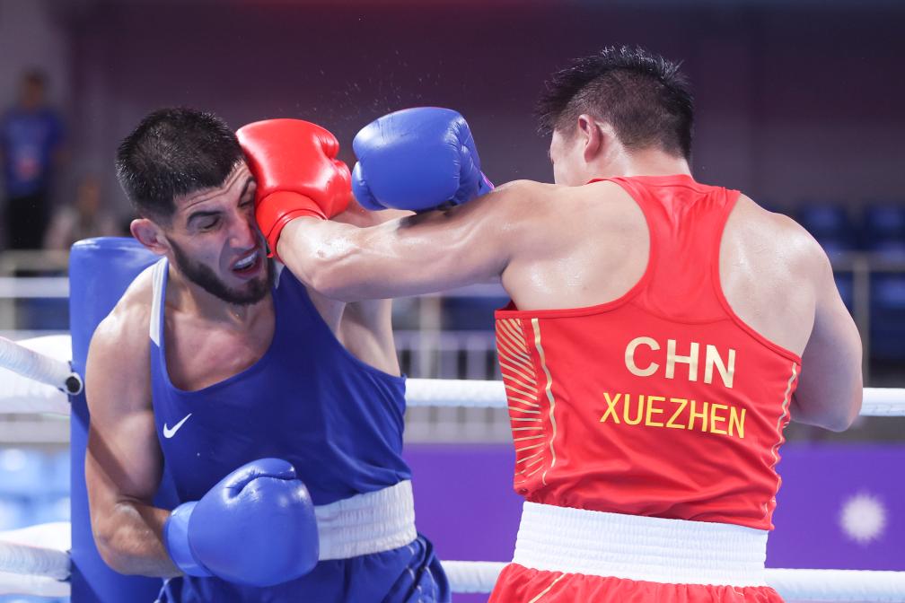 由于亚运项目众多,我选择了一些自己感兴趣但平常不太容易拍到的项目,比如:拳击。国际赛事每个场馆每场比赛都会设置内场摄影位,新华社由于其IOPP(国际奥林匹克摄影队)的身份会自动获得一个内场席位,这也是拍摄更有冲击力画面的有利条件。