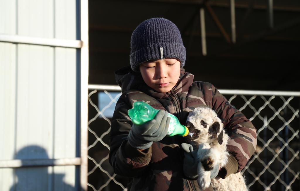 晨光熹微,在朝克的羊圈中,一只“羊妈妈”正在努力产仔,朝克和妻子赶紧跑来帮忙,只见他们一个人把住“羊妈妈”,一个人慢慢拉出小羊羔,两个人和“羊妈妈”通力合作,完成了这项“接春羔”的任务。看着刚出生不久的“春羔”依偎在“羊妈妈”身边,一家人露出了幸福的笑容。