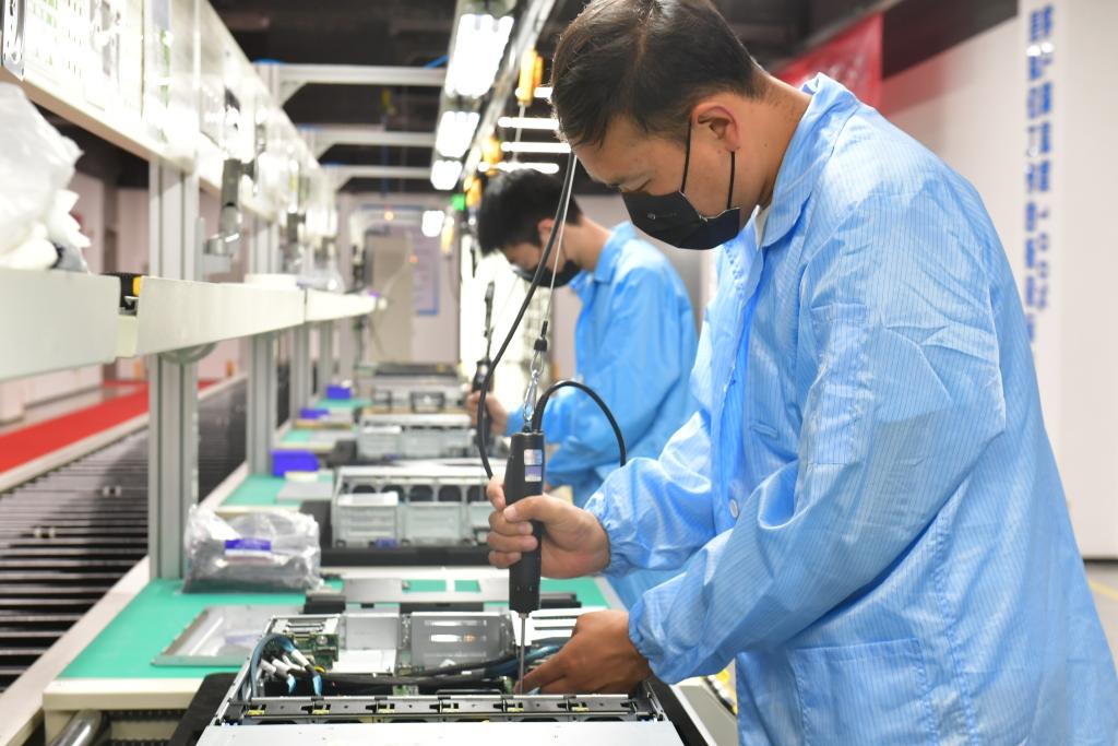 临近春节,位于河北三河燕郊高新区的联泰集群(北京)科技有限责任公司的生产车间一片忙碌。智能搬运机器人往来穿梭,操作台上工作人员正熟练地将零件按顺序加装到服务器机箱内,仅十几分钟,一台服务器在流水线上装配完成。