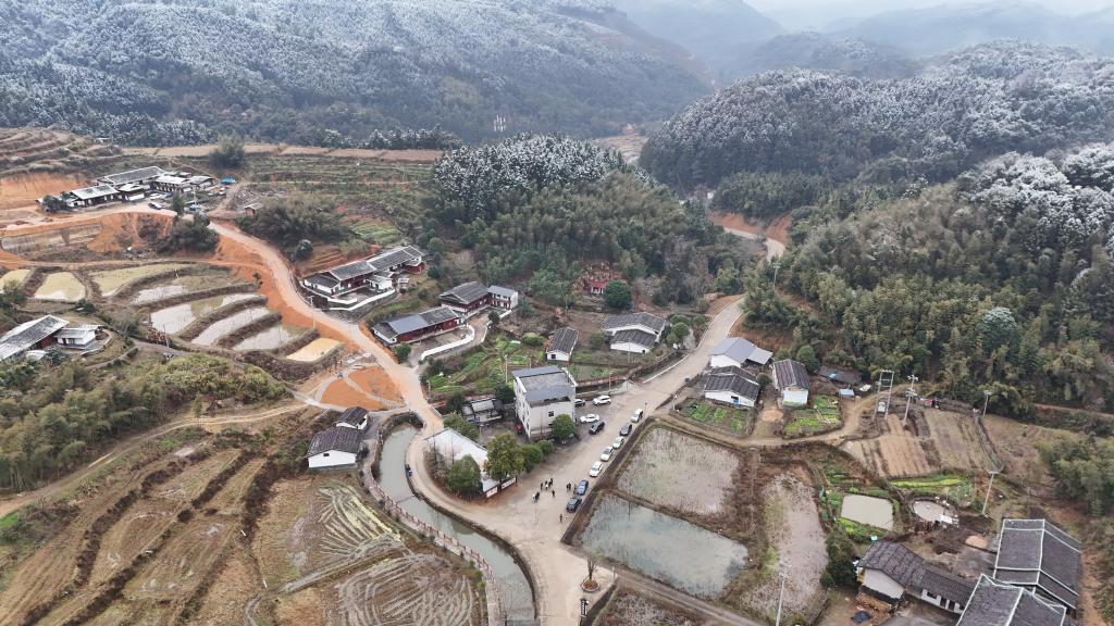干净整洁的黄溪坑村雪后村景。无人机照片(张凌欣 摄 )