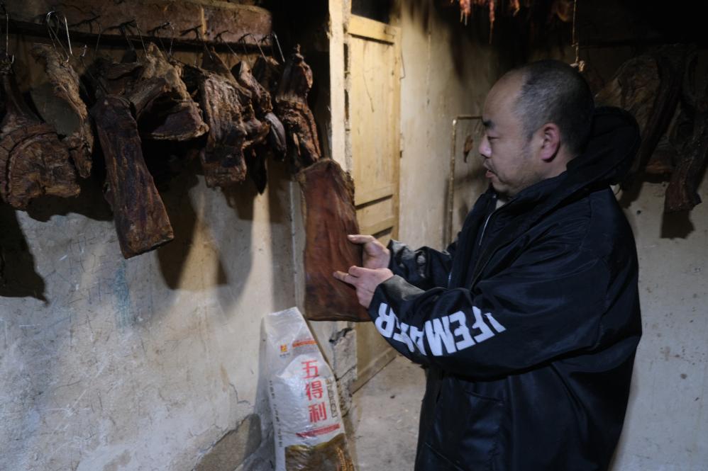 走进濯水镇濯水社区农户邬云胜的家中,房梁与墙壁上都悬挂着正在熏制中的腊肉,这些腊肉大多已被镇上居民预订。据介绍,制作腊肉需精选当地的优质土猪肉,用香料进行腌制后风干,然后在带着松树、柏枝香味的烟气中再熏制一个月,整个制作周期持续约一个半月,可谓是“时间的风味”。