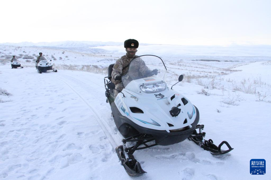 到了巡边时间,记者跟着几名战士驾驶摩托雪橇出发。起伏的柏油路上盖着一层厚厚的雪,不远处,塔斯提河蜿蜒流淌。虽然当天气温不算太低,但行驶中,风沙夹杂着雪粒快速拍打在脸上,没过一会儿,坐在后座的记者就被冻得“想找个地方躲起来”。