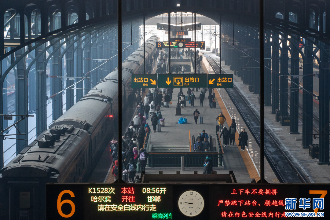 在哈尔滨火车站,旅客准备乘车出行。新华社记者 张涛 摄