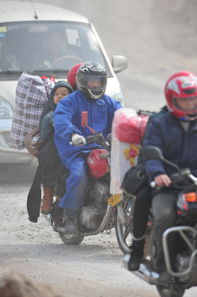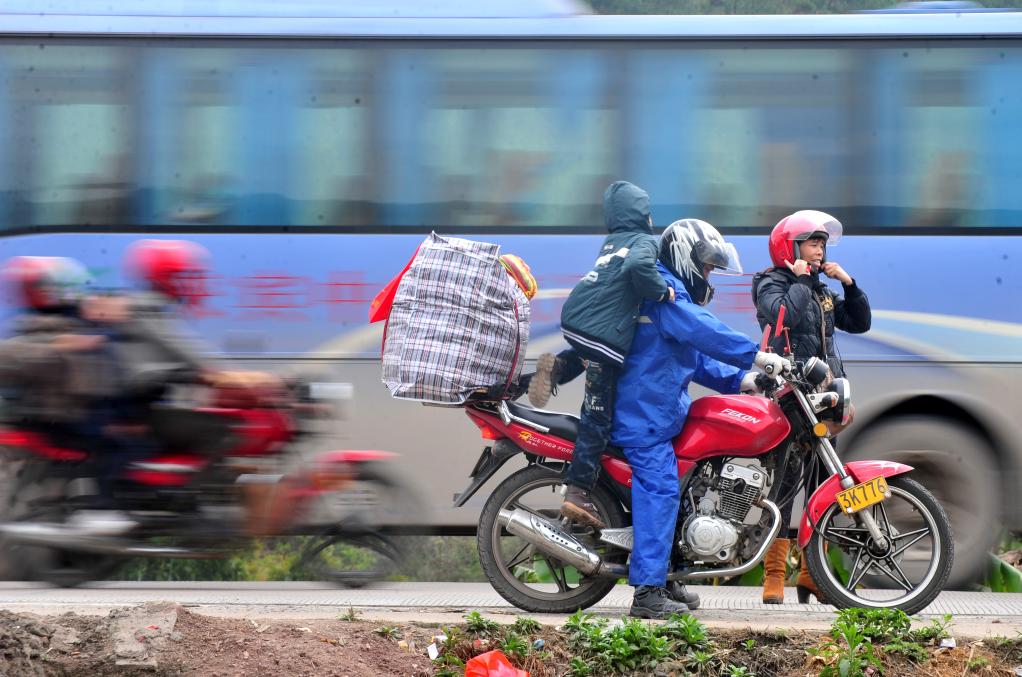 2013年2月3日,在浩浩荡荡的返乡“摩托大军”里,时年38岁的周克兵携妻带儿,言语甚少,给人一种难以打交道的感觉。偶有笑颜展现,是看到当时年仅9岁儿子可爱模样的时候。