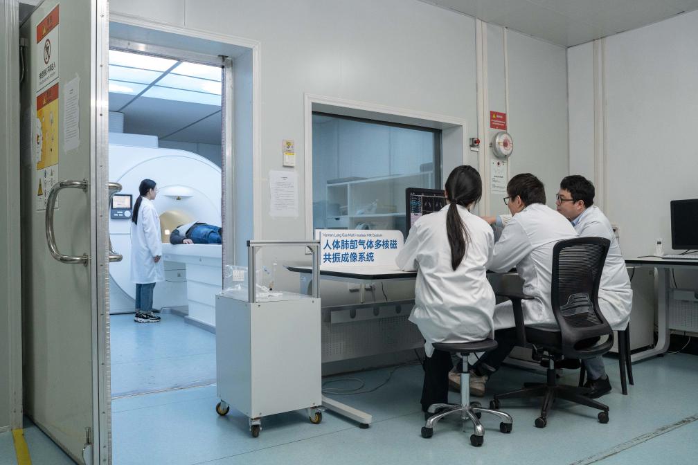 2月9日,周欣团队科研人员正在开展人体肺部气体多核超快成像试验。(中国科学院精密测量科学与技术创新研究院供图)