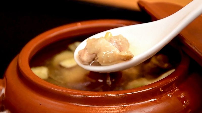鸡肉滑嫩、汤鲜味美的汽锅鸡。视频截图