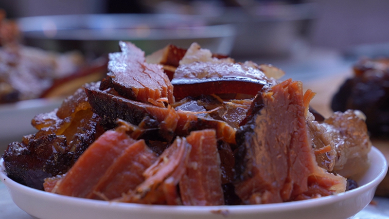 蒸煮好的腊肉(资料图)。新华网发(曹敏 摄)