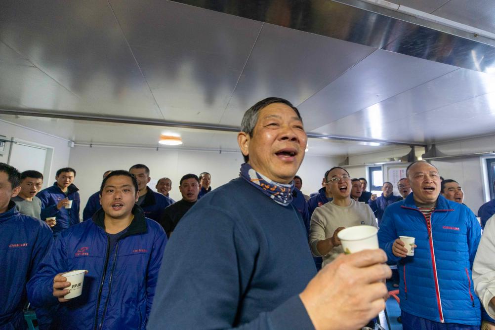 傍晚时分,一声“开饭啦”如约响起。队员们入席就坐,地球最南端的年夜饭,就此开席。
