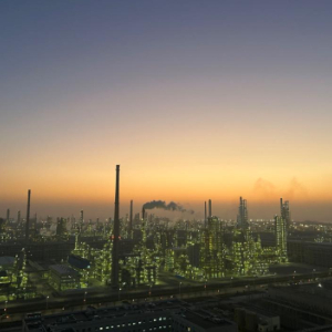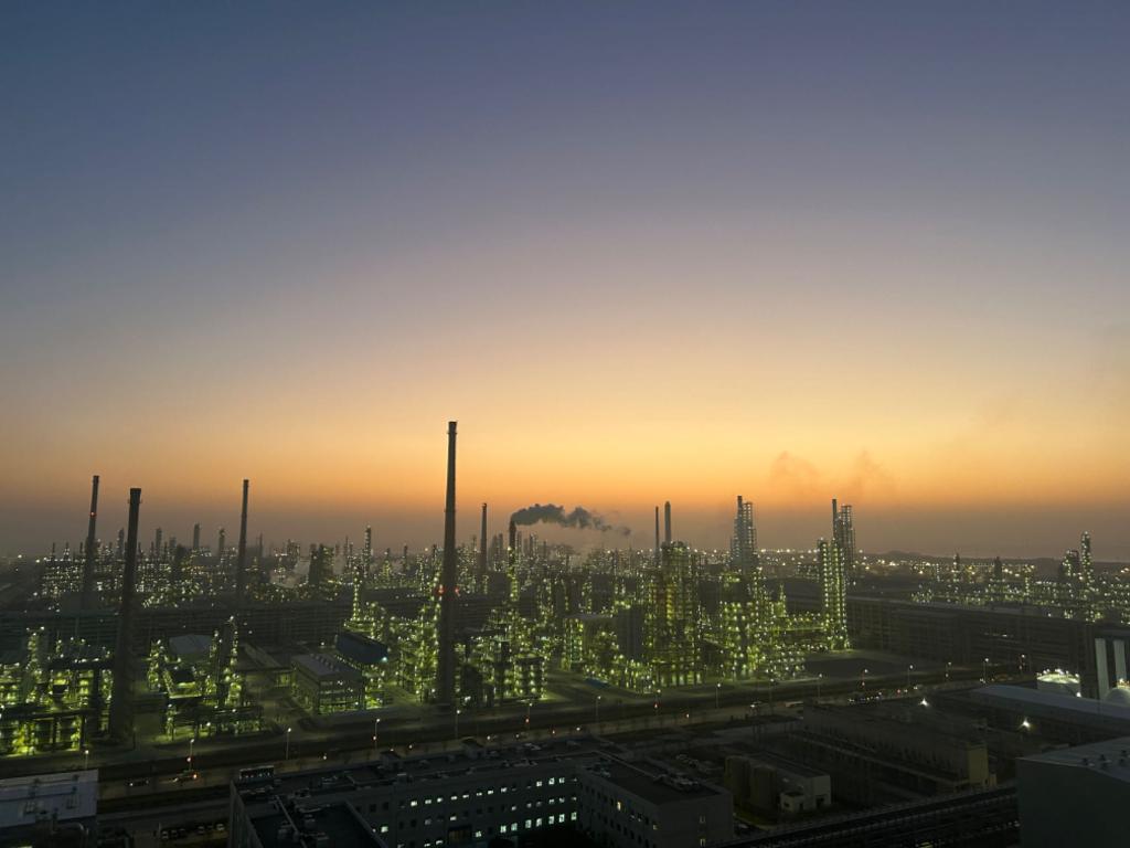 夕阳下的鱼山岛绿色石化基地。新华社记者黄筱 摄