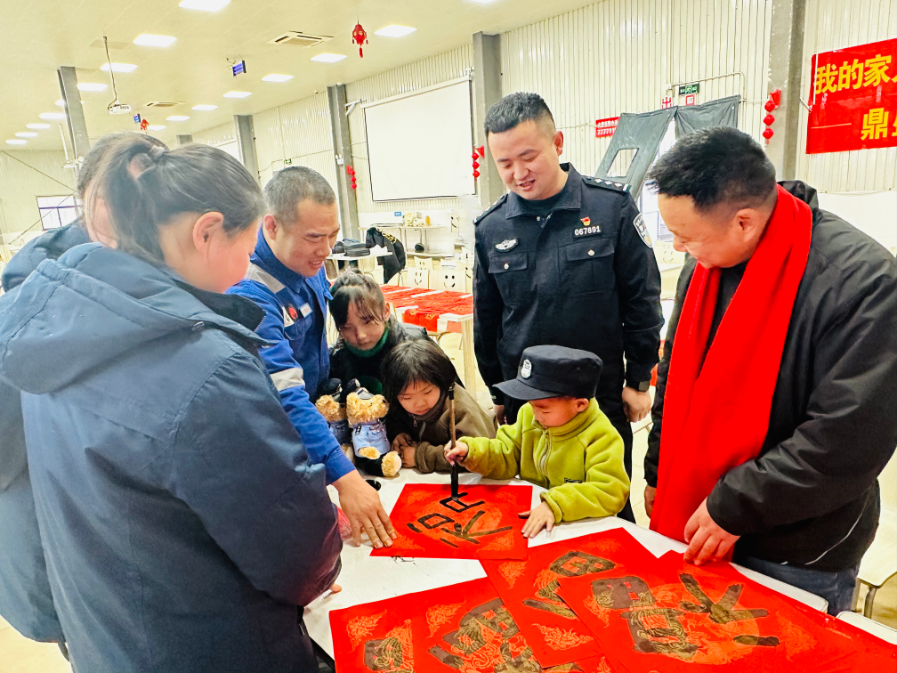 跨越“山海”的“小候鸟”们在食堂参与春节写福字活动。新华社发(张志龙 摄)