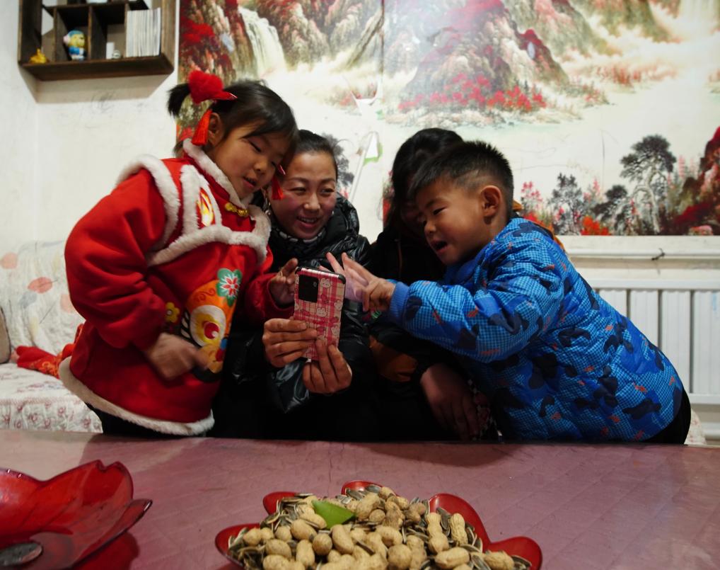 李明乐的妻子和孩子在赴舟山过年前与李明乐视频通话。新华社发(张志龙 摄)