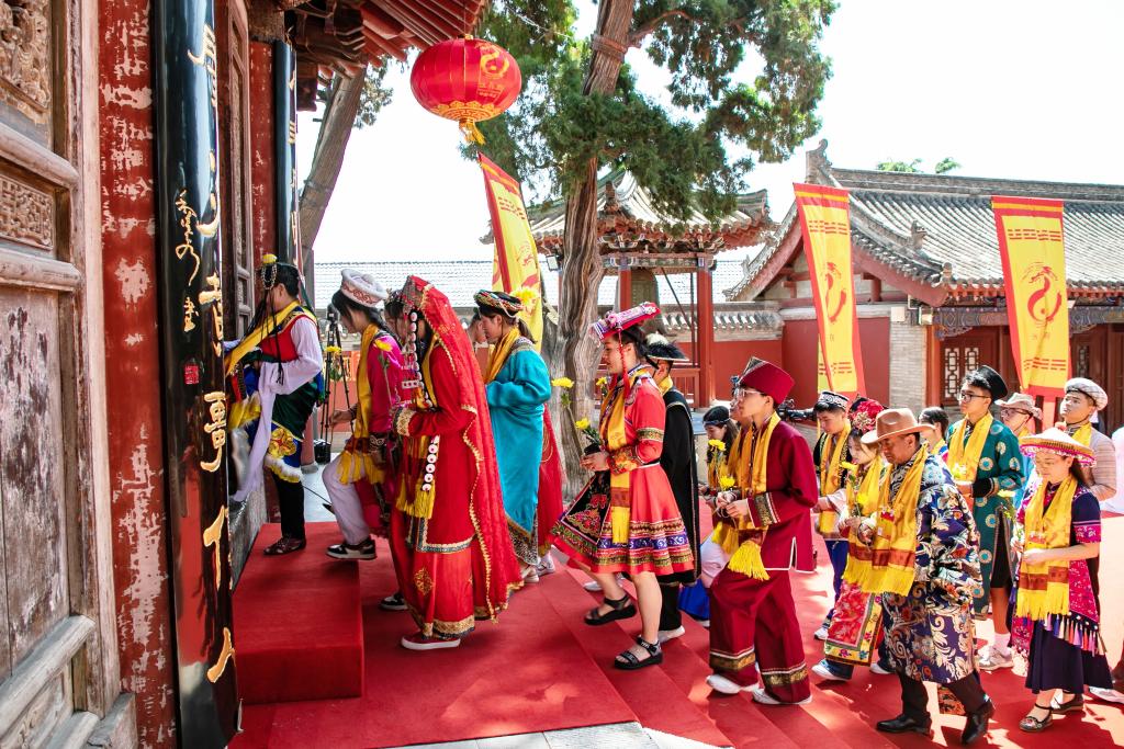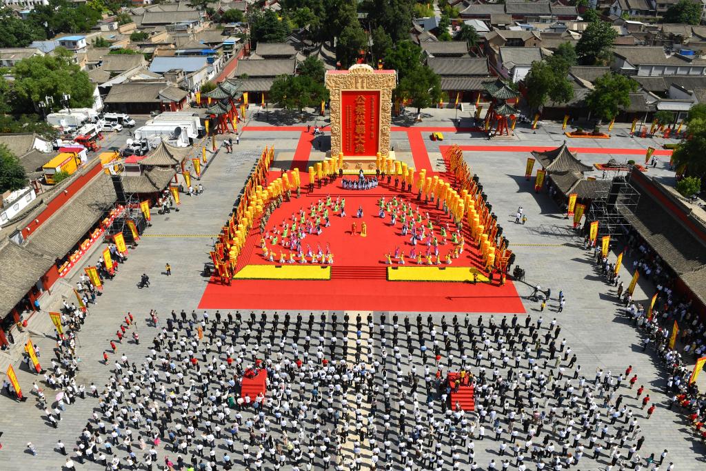 伏羲庙的院子里,参天古柏形似飞龙,华盖苍翠如洗,不时有人穿过印着龙形图案的旌旗,在先天殿前躬身敬拜。早在春秋时期,渭水流域就有祭祀伏羲的传统。每年6月,当地举行的公祭伏羲大典已成为全球华人寻根祭祖的盛会和传承弘扬中华传统文化的重要平台,至今已成功举办30多届。