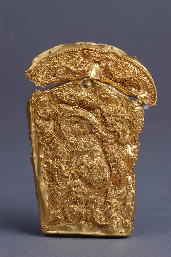汉代金掐丝焊珠七龙纹金带扣。(天水市博物馆供图)