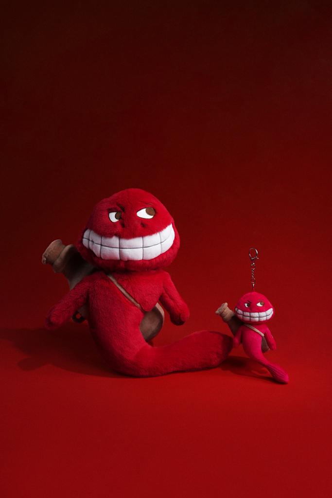 甘肃省博物馆文创中心以鲵鱼纹彩陶瓶为灵感设计的鲵娃娃·彩陶玩偶,被网友戏称为“背罐娃娃鱼”。(甘肃省博物馆供图)