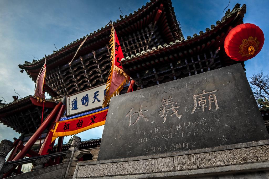 位于天水市秦州区的伏羲庙坐北朝南,临街而建,是我国现存规模较大、保存较完整的纪念“龙祖”伏羲的明代建筑群,被列为全国重点文物保护单位。大殿中央,高达3米的伏羲像手持八卦盘,正襟危坐。抬头仰观,可见殿顶绘制的河图洛书和六十四卦。