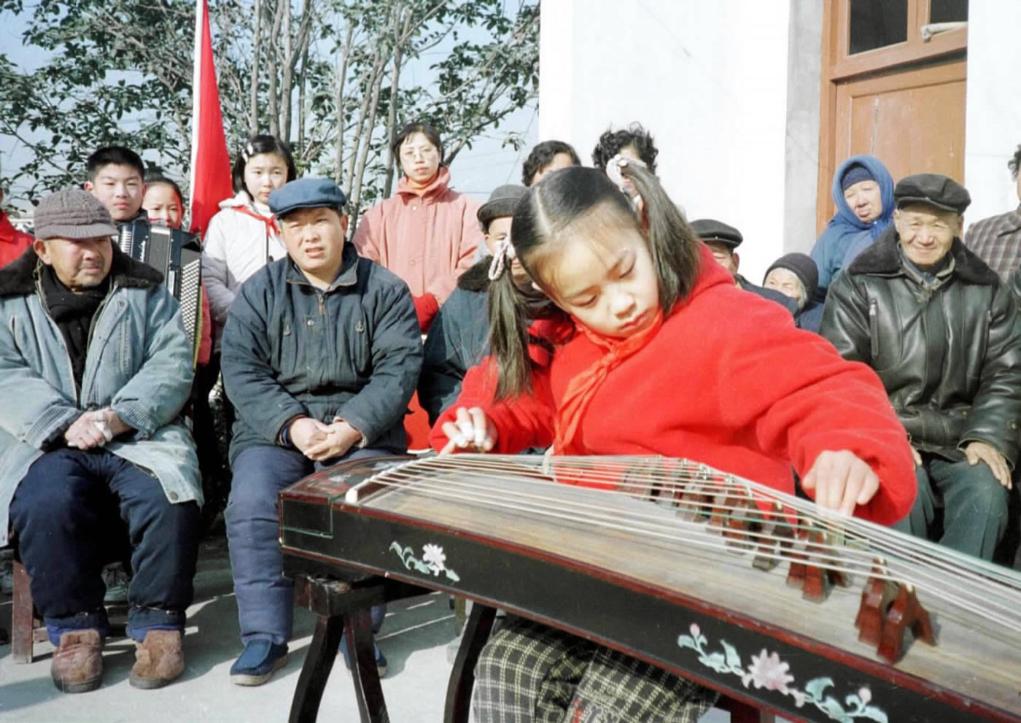 2001年春节前,江苏镇江市宝塔路中心小学的孩子们到郊区乡镇的敬老院,为老人们演出并向他们拜年。