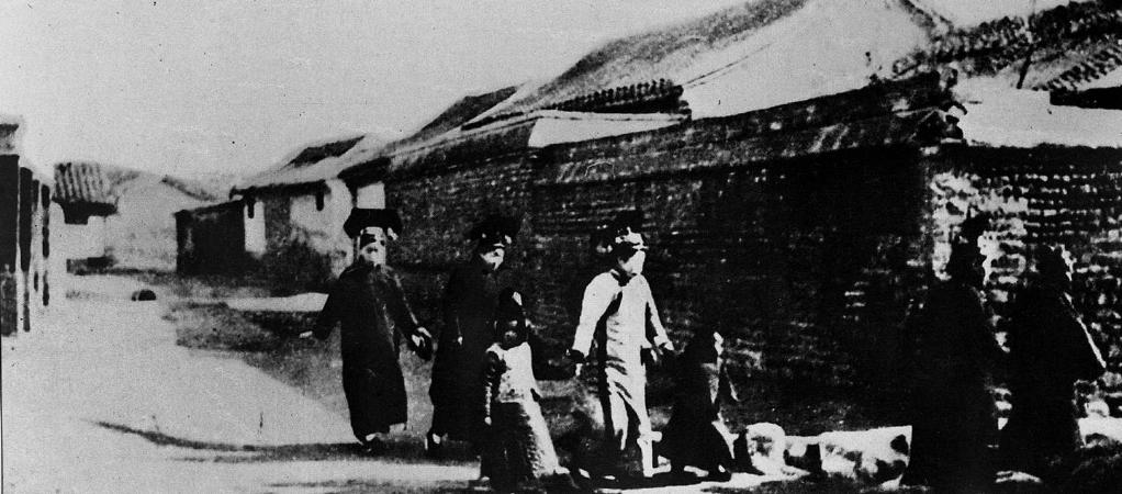 这是清末的北京,妇女穿戴一新出门走亲访友。