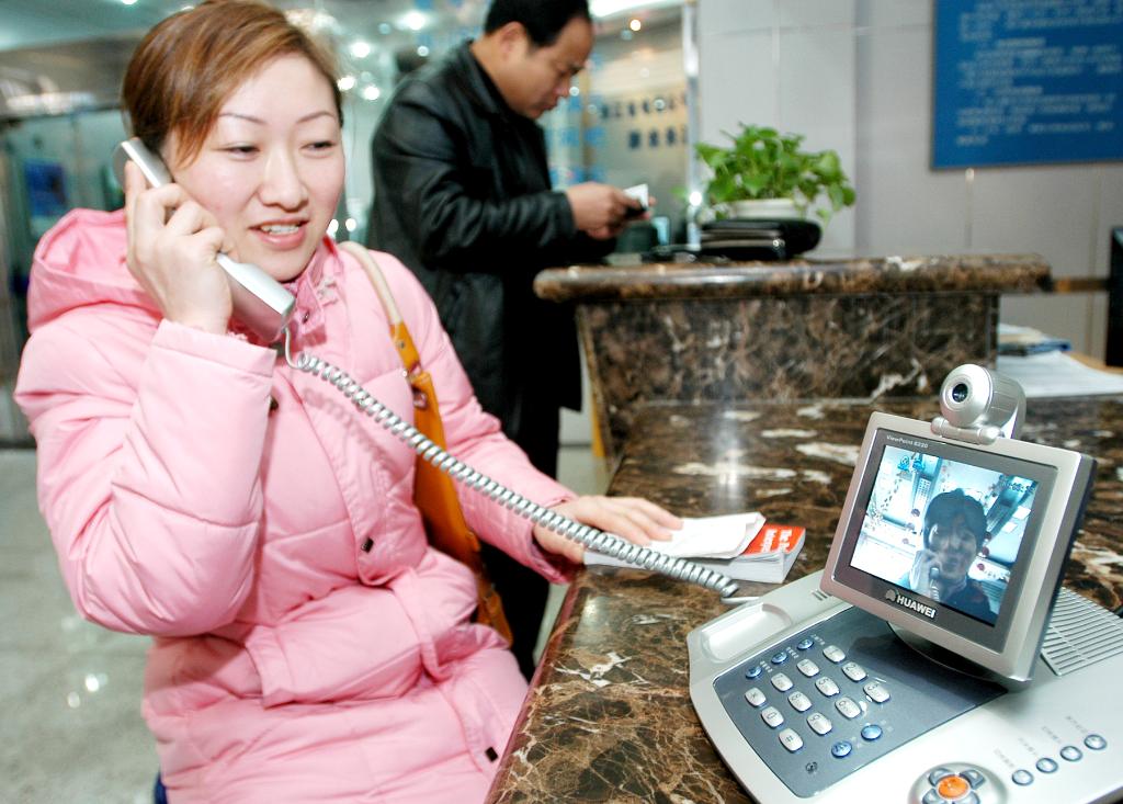 2006年1月28日,浙江省上虞区一位市民通过视频电话向远在异地的亲朋好友“面对面”拜年。
