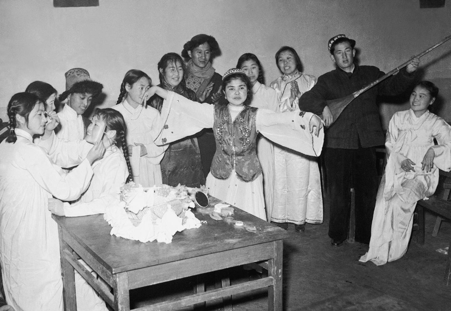 1961年春节前夕,中央民族学院学生准备参加学校举办的联欢晚会。