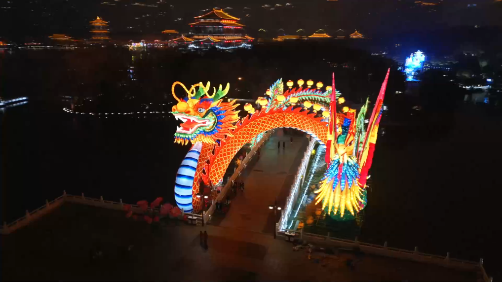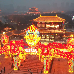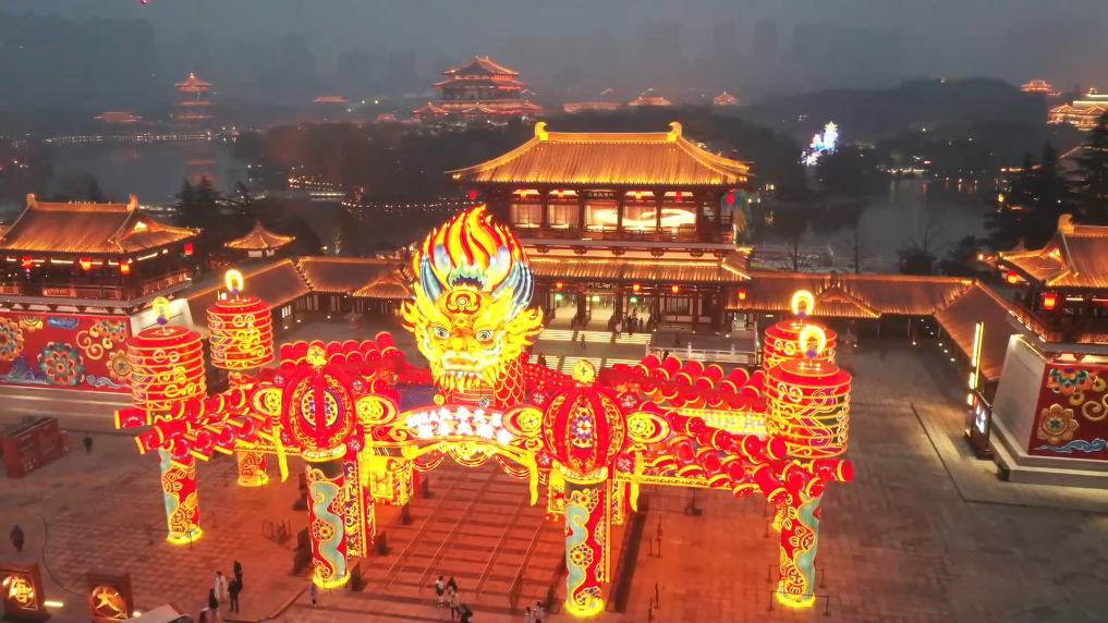 春节期间,西安大唐芙蓉园内,“祥龙迎春”“龙凤呈祥”“百鸟朝凤”……一盏盏形态各异的花灯或与雕梁画栋的建筑融为动人的风光,或立于芙蓉湖上交织出璀璨的水上繁星,5大灯区、45组花灯点亮古都夜空,为市民游客营造出“景中赏灯,灯中有景,灯景相依”的沉浸式体验。