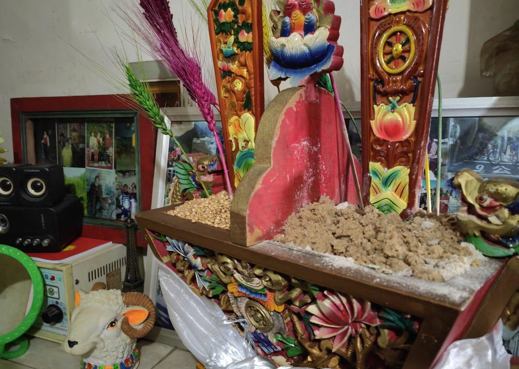 孙建学家中的“切玛”,一边是青稞,一边是糌粑,并插上了花签(2月9日摄)。新华社记者刘洲鹏 摄