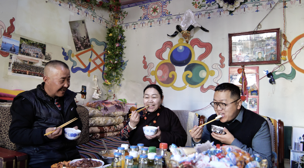 除夕夜,孙建学一家人按照传统习俗,喝一碗香浓的“古突”,寓意着吉祥如意、幸福美满;大年初一,孙建学会煮一锅家乡的牛肉面,面里有对故乡的眷恋;在过年走访邻里时,他也会品尝到其他民族的特色美食,来上一盘热气腾腾的手抓饭。