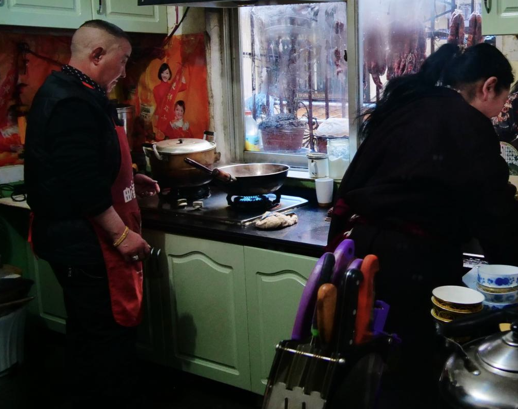孙建学和妻子索朗巴珍在厨房准备过年餐食(2月9日摄)。新华社记者普布次仁 摄