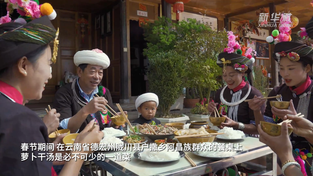 春节期间,在云南省德宏州陇川县户撒乡阿昌族群众的餐桌上,萝卜干汤是必不可少的一道菜。这道由传统制作技艺衍生而来的菜品,不仅流传久远,更是户撒游子舌尖的一道童年回忆。