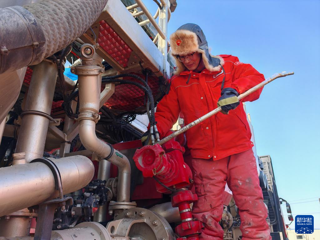 新华社呼和浩特2月14日电 题:河套盆地采油人:冰清雪白一抹红