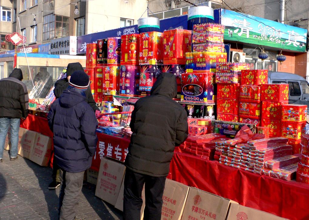 2006年2月2日是农历正月初五,在东北有放爆竹、吃面的习俗。这是市民在哈尔滨的鞭炮销售点购买鞭炮。