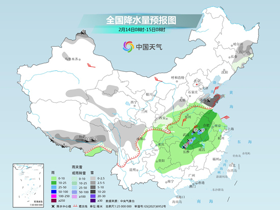 昨天(2月13日),中东部地区升温继续,暖意加码。不过,随着一股较强冷空气东移南下,今明天长江中下游及其以北地区气温将自北向南下降4℃至8℃,部分地区降幅可达10℃至12℃。降水方面,今天开始,新疆新一轮降雪过程再度来袭,南方阴雨天气发展增多。