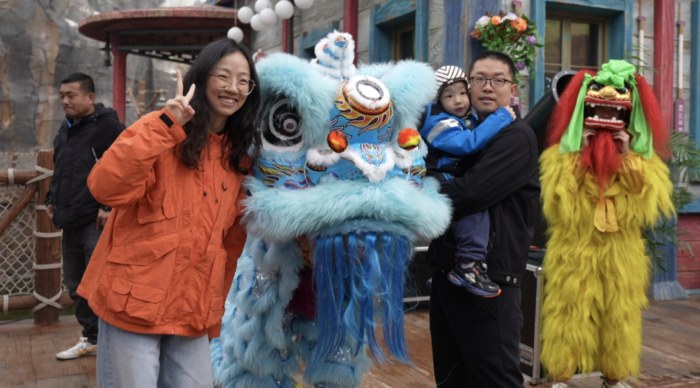 春节期间,游客在海南省儋州市海花岛旅游度假区合照。新华社发