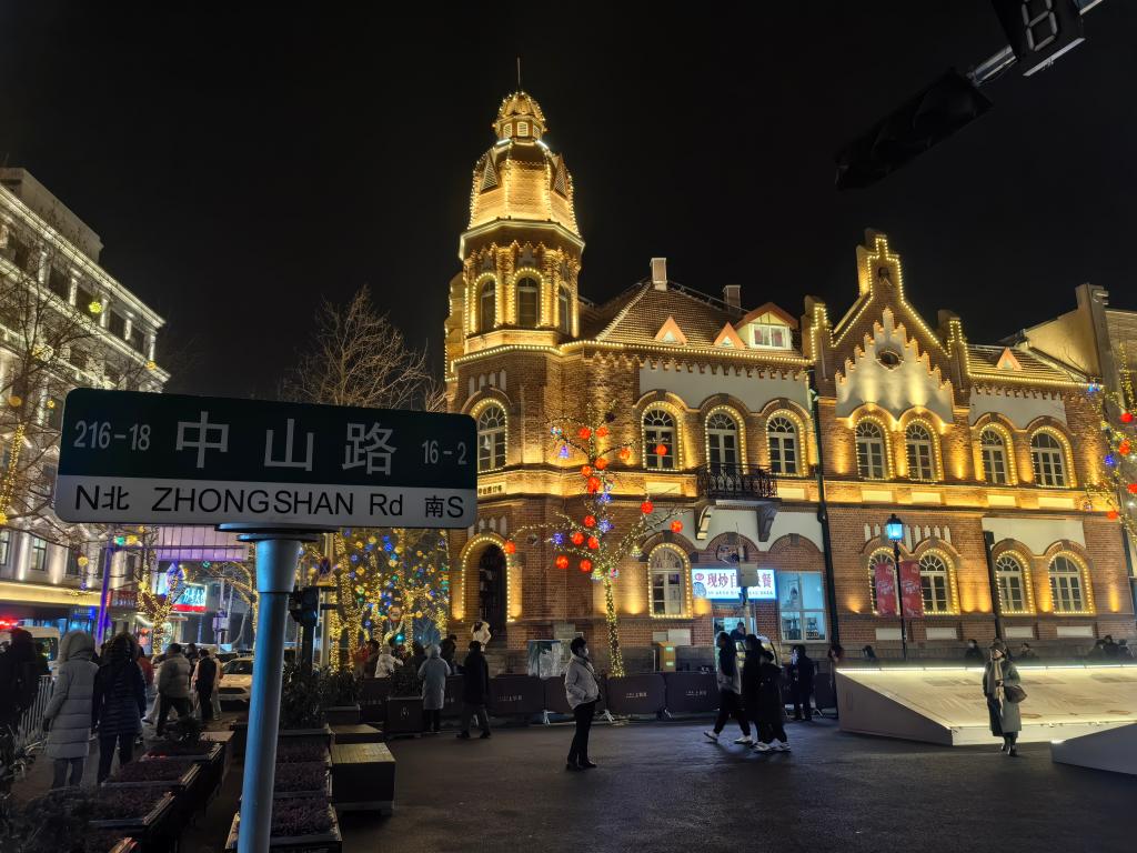 天色渐沉,中山路上越发热闹,传统民俗演员举着祥龙主题灯笼匆匆路过,准备开始晚上的巡游演出;熙熙攘攘的游客在路中间布设的麦穗灯带中许下新年愿望,又拐进路边小店吃一碗热气腾腾的青岛野馄饨。