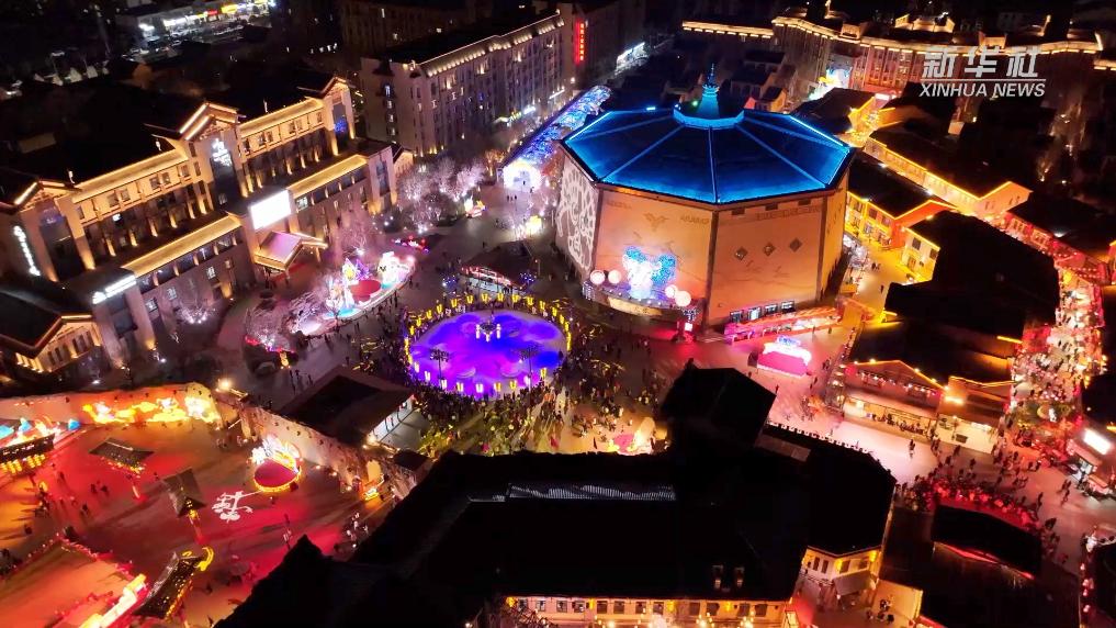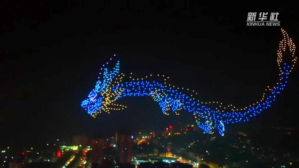 在衡水市,地面的灯海与无人机的灯光相映成趣,共同点亮了节日的夜空。