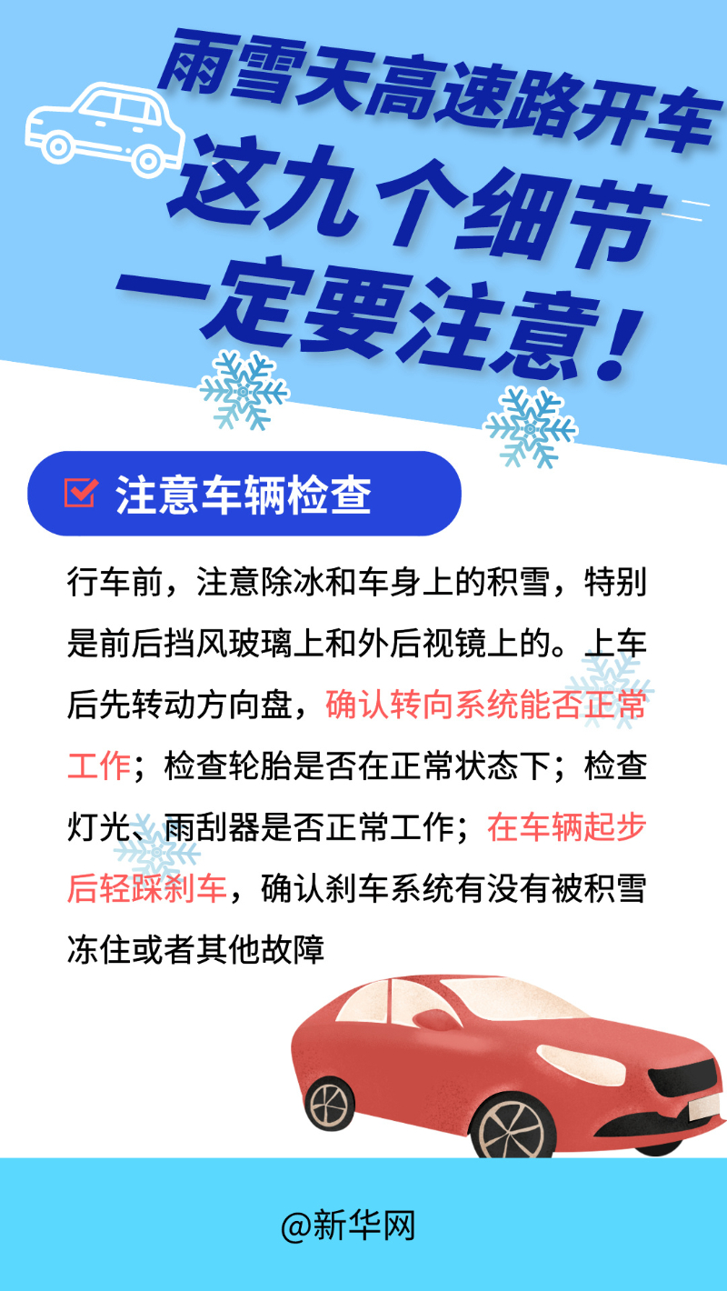 当前正值春运返程高峰,我国大部都将遭遇大范围雨雪,黑龙江、新疆、西藏等地遭遇强降雪,返程路上要谨防雨雪冰冻天气对交通的不利影响。针对雨雪天气高速行车给大家收集了一些实用技巧,希望能给返程的你们带来帮助。
