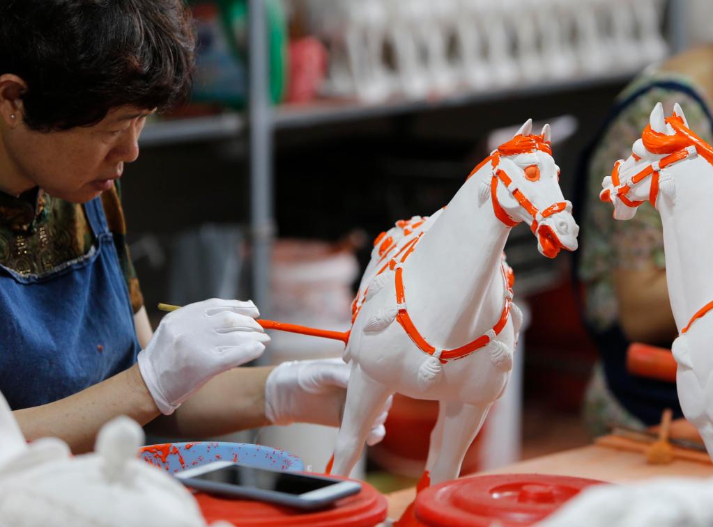 在唐三彩文化园里,参加研学活动的学生们通过听讲解、亲身体验唐三彩制作工序,更深刻地了解其背后的历史底蕴。说起当初打造这个园子的目的,唐三彩艺人张二孬充满感情,“园子里的每一块砖都是我精挑细选后铺的,这些唐三彩(展品)也都是我做的,”他拿起一件三彩马说到,“我想让大家都看到唐三彩的美,看到中国历史、中国文化的美!” 张二孬眼神中透露出骄傲。