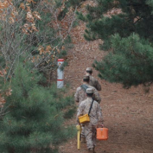 光缆巡护员李庆成跟在队尾,行进在铺满板栗壳和枯树叶的山地里,棕色的作战靴早已被水汽和泥点染成深咖色。经过两年多历练,这位上等兵不仅适应了山路,还练有一手“好功夫”。