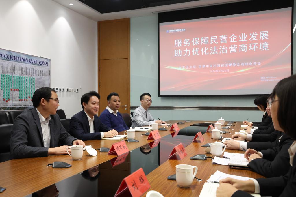 王浩(左二)与宝坻区法院就优化法治营商环境等问题座谈。新华社记者孙凡越 摄