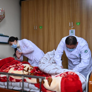 2024年1月22日,在宁波市镇海区金生怡养院,医护人员在房间为一位失能老人提供护理服务。新华社记者黄宗治 摄