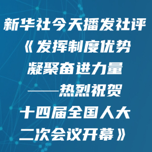 新华社消息丨新华社今天播发社评《发挥制度优势 凝聚奋进力量——热烈祝贺十四届全国人大二次会议开幕》