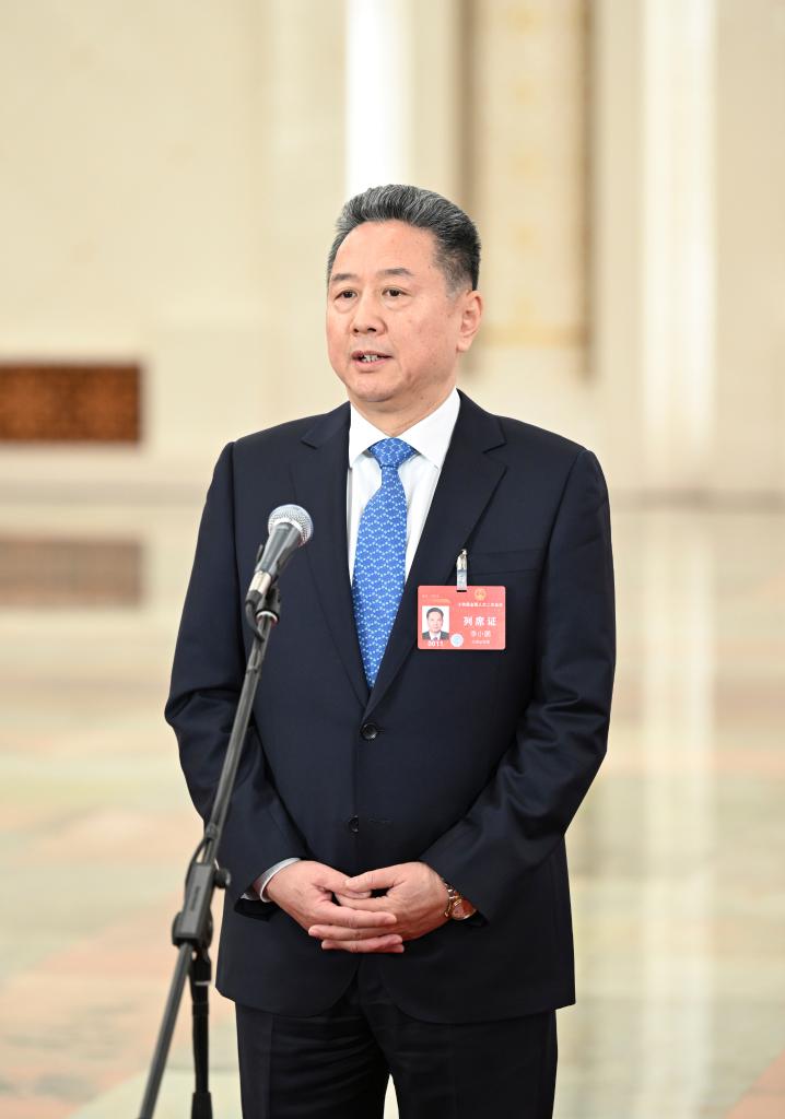 3月8日,第十四届全国人民代表大会第二次会议第二场“部长通道”集中采访活动在北京人民大会堂举行。这是交通运输部部长李小鹏接受媒体采访。