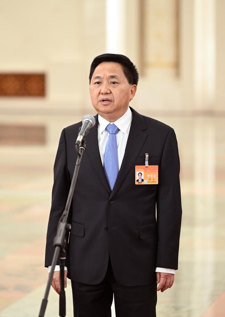 3月8日,第十四届全国人民代表大会第二次会议第二场“部长通道”集中采访活动在北京人民大会堂举行。这是民政部部长陆治原接受媒体采访。