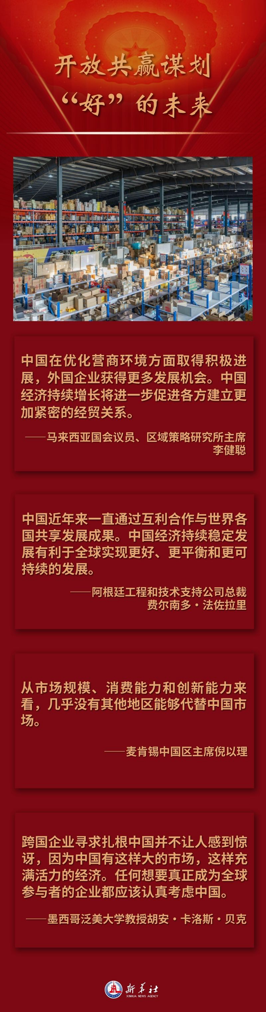 多国人士表示,中国经济以自信务实的态度,夯实稳中求进的发展基础;以勇于进取的创新,积聚澎湃不息的发展力量;以合作开放的胸襟,谋划互利共赢的发展愿景。中国需要世界,世界同样需要中国。