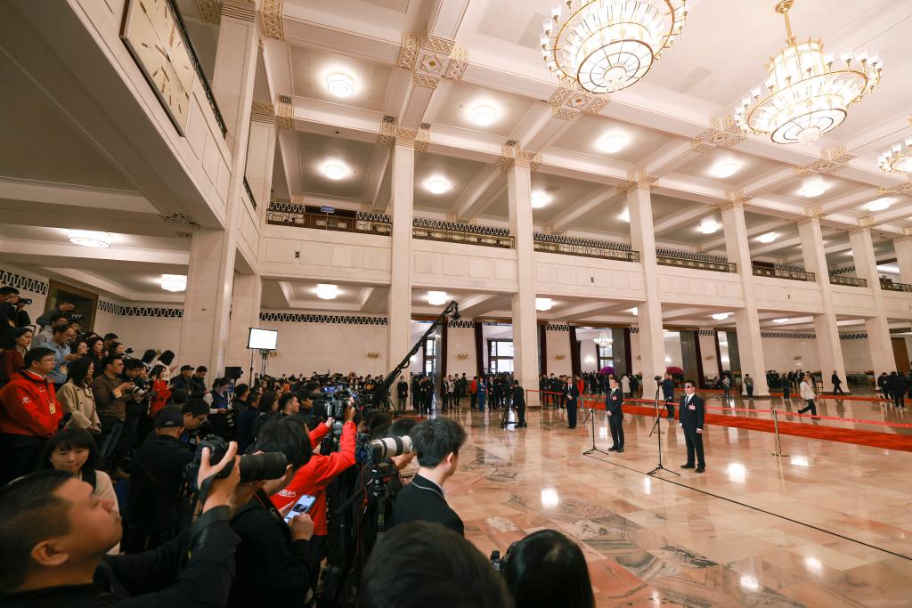 3月8日,第十四届全国人民代表大会第二次会议第二场“代表通道”集中采访活动在北京人民大会堂举行。