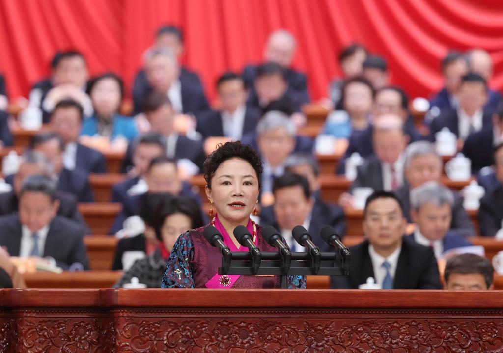 3月9日,全国政协十四届二次会议在北京人民大会堂举行第三次全体会议。这是卓嘎委员作大会发言。