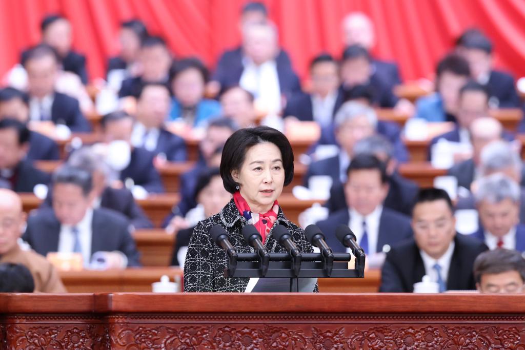 3月9日,全国政协十四届二次会议在北京人民大会堂举行第三次全体会议。这是陈星莺委员代表民革中央作大会发言。