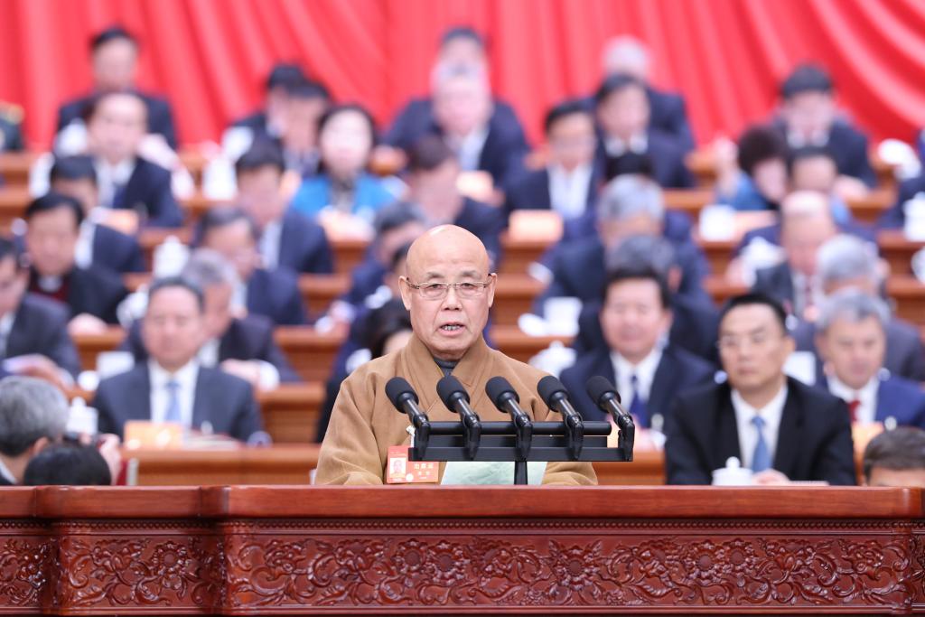 3月9日,全国政协十四届二次会议在北京人民大会堂举行第三次全体会议。这是演觉委员作大会发言。
