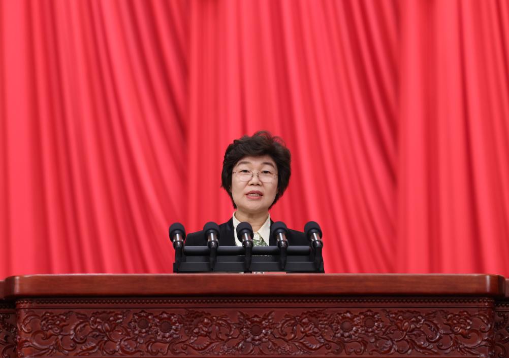 3月9日,全国政协十四届二次会议在北京人民大会堂举行第三次全体会议。这是陈星莺委员代表民革中央作大会发言。