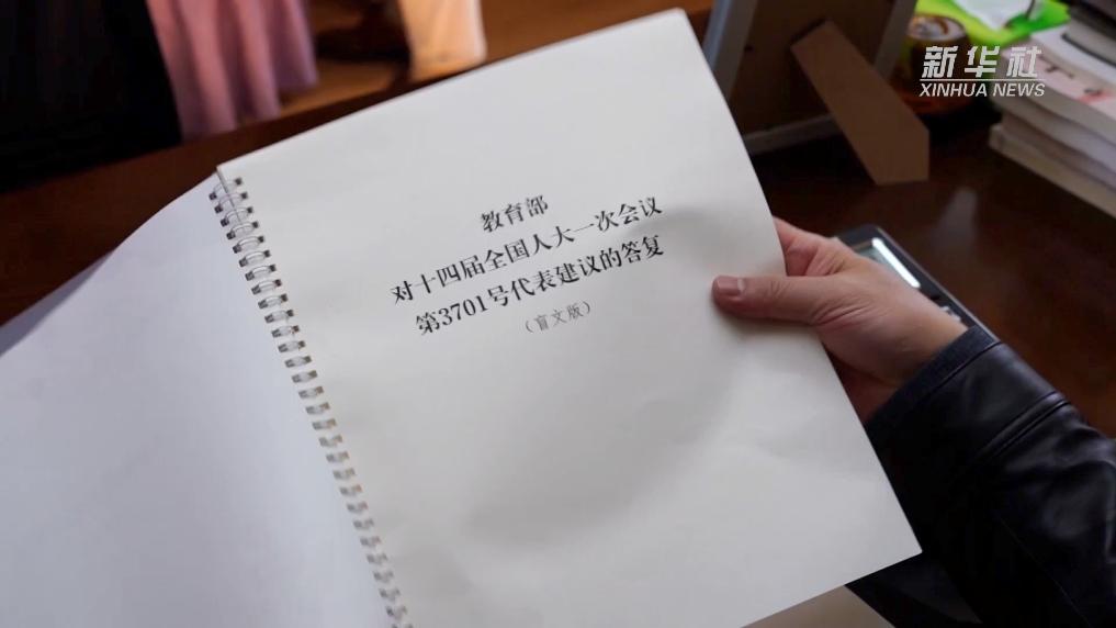 首位盲人全国人大代表王永澄,拿到一份特别的政府工作报告。他一边认真聆听报告,一边用双手仔细摩挲着这份更显厚重的文件,难掩激动之情。